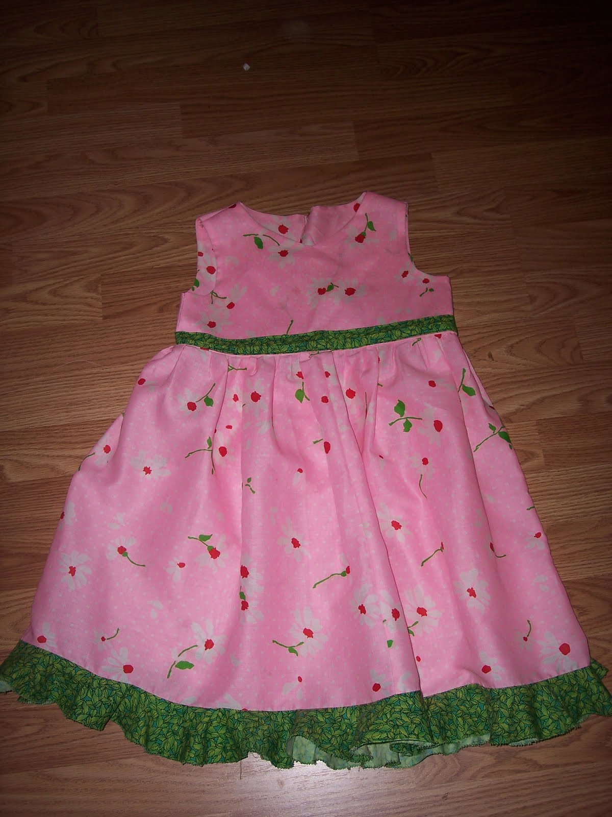 Mondays always seem to sneek up on me and I can't believe that another week is gone. In just 2 more weeks my daughter "Kitten" will be 5 years old. *sigh* So I pulled together this dress from the new pattern and fabric I got at Joanns the other day.